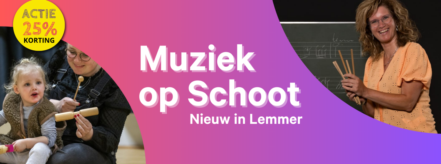 Vanaf maandagochtend 13 april 2026 start onze nieuwste muziekcursus Muziek op Schoot in De Hege Fonnen in Lemmer. De cursus bestaat uit 6 lessen en wordt deze eerste keer met een mooie korting van 25% aangeboden!